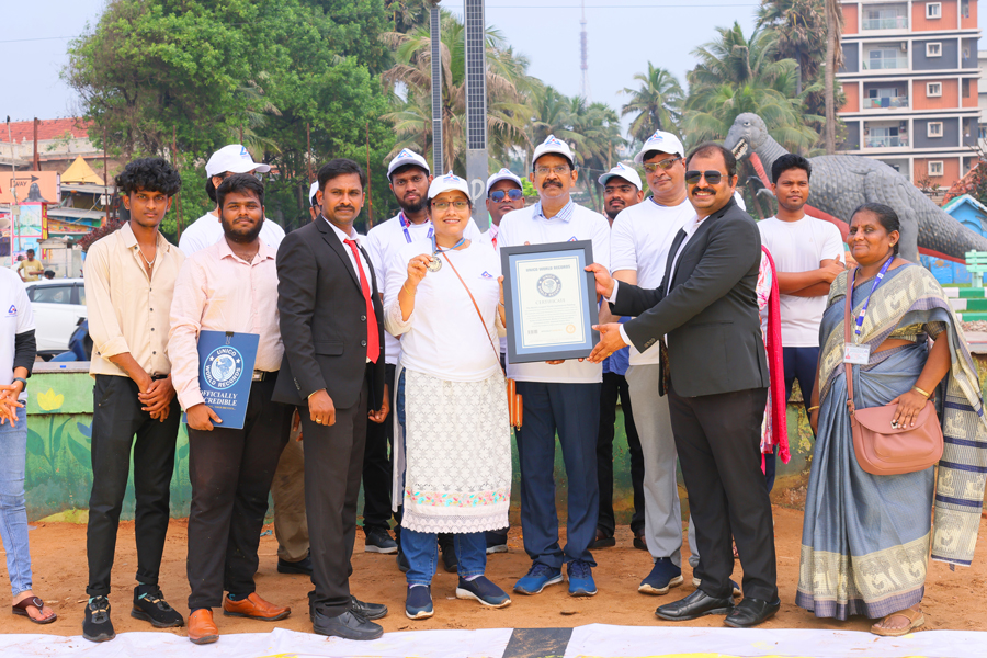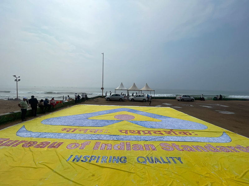 The World’s Largest Thumb Impressions Painting, measuring 2,040 square feet, was created by the Bureau of Indian Standards (BIS), Vijayawada Branch Office, using 1,12,388 thumb impressions contributed by 840 participants. The painting was made to promote awareness about Indian Standards and Quality Culture in India and to set a new world record at the event ‘BIS Walkathon’ held on 11th October 2025 at RK Beach, Visakhapatnam, India. The event was organized by the Bureau of Indian Standards, Ministry of Consumer Affairs, Government of India, Vijayawada Branch Office in association with Andhra University and was managed by Ladder Commercial.